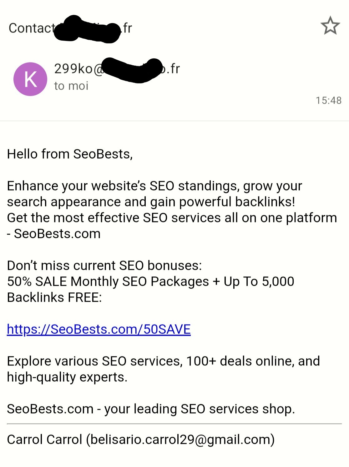 gn1234567 Bonjour, Cela fait quelques jours que je me rends compte de recevoir des messages de spam via 299ko. Y'a-t-il moyen de les éviter ? Bonne fin de journée. Gérard.
